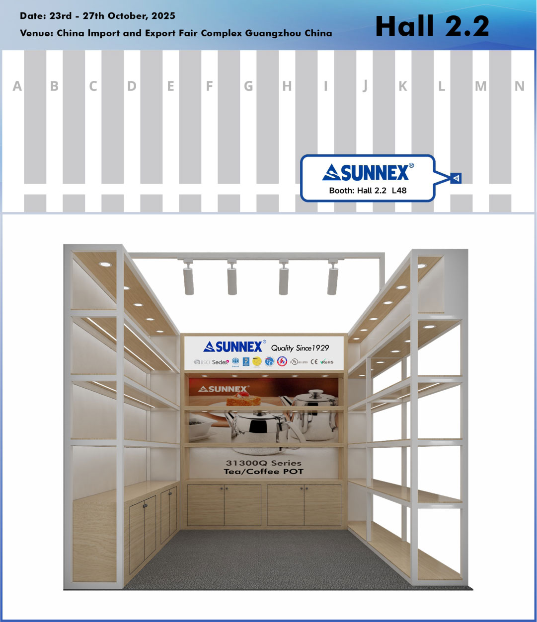গুয়াংঝো, চীন - অক্টোবর 2025 - SUNNEX সেঞ্চুরি (শেনজেন) লিমিটেড, প্রিমিয়াম বুফে ওয়্যার, চাফিং ডিশ, ড্রিংক ডিসপেনসার এবং গৃহস্থালীর সামগ্রীর একটি নেতৃস্থানীয় প্রস্তুতকারক, 138তম ফায়ান্টন চায়না ইমপোর্ট এবং এক্সপোর্টন চায়না ইমপোর্ট-এ আমাদের বুথ পরিদর্শন করার জন্য আন্তর্জাতিক ক্রেতা, মিডিয়া এবং শিল্প পেশাদারদের আমন্ত্রণ জানাতে পেরে আনন্দিত৷